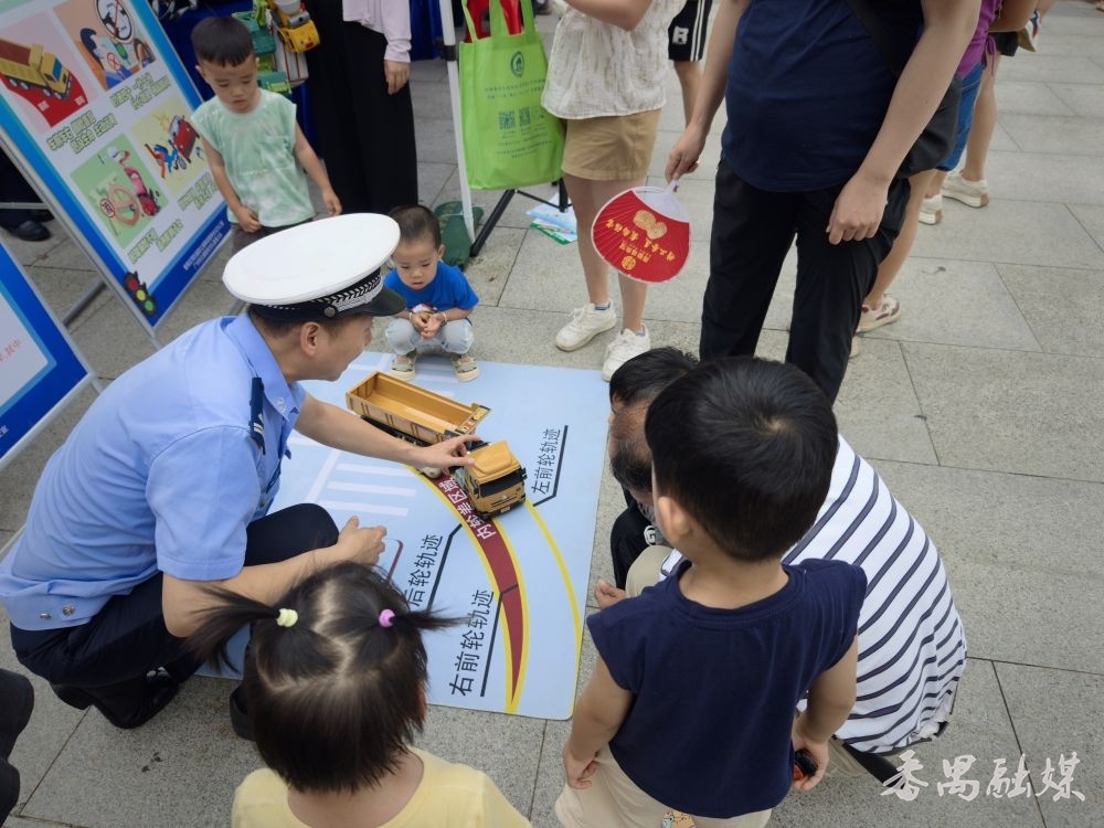 大车行进轨迹模拟区域则吸引了不少孩子的目光。该区域通过设置模拟道路地毯和大车模型,直观展示大车在行进过程中的轨迹变化。孩子们在家长的陪同下,兴奋地参与其中,有的孩子亲自操作大车模型,观察其行进轨迹,在玩乐中学习到了如何在道路上与大车保持安全距离,如何避免进入大车的危险行进区域等知识。“原来大车转弯时要占这么大地方,以后过马路一定要离远点!”一名小朋友兴奋地分享自己的收获。