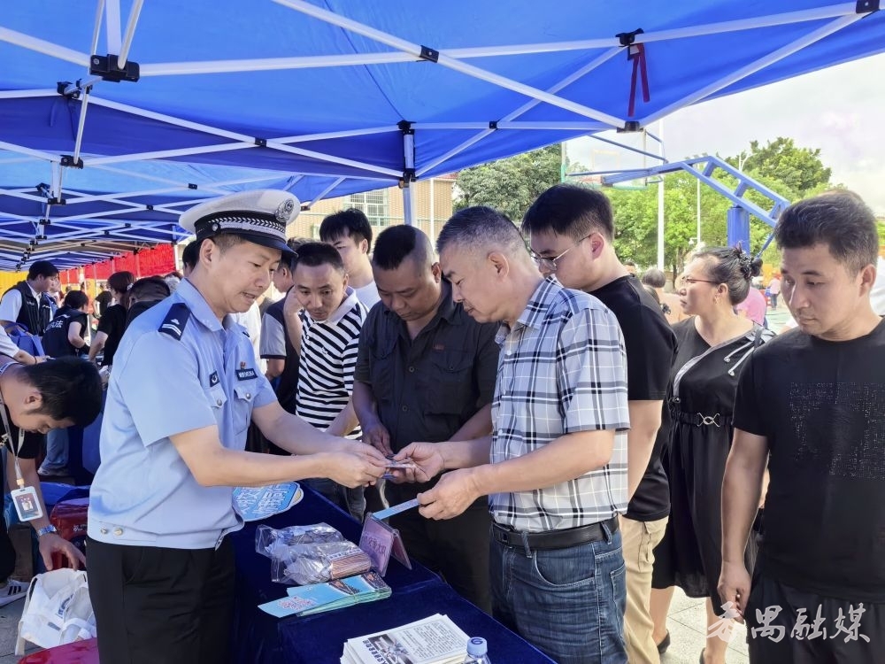 此外,活动现场还设有消防、安全、环保、食安、医疗健康等相关摊位。禁毒摊位前,仿真毒品模型陈列整齐,工作人员向群众讲解新型毒品的伪装形式与危害;医疗健康摊位前,医护人员为群众免费测量血压血糖,耐心解答健康疑问……各摊位前人头攒动,群众在互动中收获知识与实用信息。