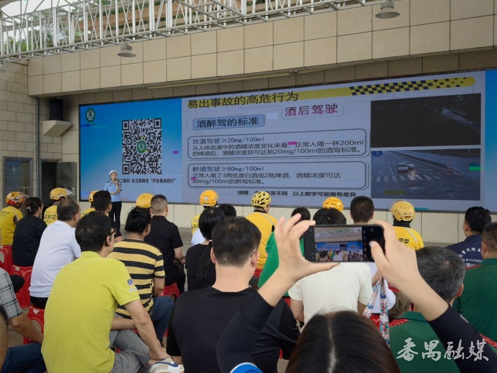 活动期间,番禺交警大队宣传民警带来了一场干货满满的交通安全知识讲解。宣讲民警从“戴好头盔再出发”讲起,强调了骑行时佩戴头盔对于保障生命安全的关键作用。接着深入到“远离盲区保安全”的内容,详细剖析了大型车辆盲区的危险之处。民警还对闯红灯、穿插、逆行等易引发事故的高危行为,以及酒后驾驶的严重危害等方面进行了详细阐述。在讲解过程中,民警结合事故案例,以及相关法律法规,深入浅出地讲解,让在场的每一位参与者都深刻认识到安全出行的重要性。